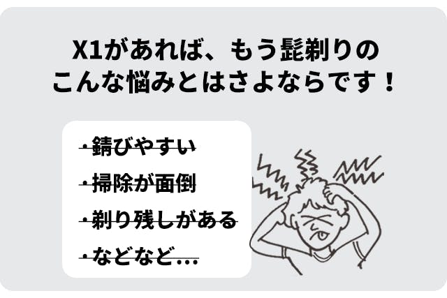 X1は切れ味が優れているだけでなく、顔の輪郭にしっかりフィットしますので、快適で痛みがありません。剃り残しも少なく、すっきり仕上がります。