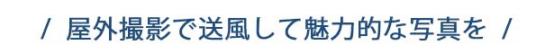 屋外で人物を撮影する時、そよ風で髪や服がさりげなくなびいていると、より活き活きとした雰囲気に仕上がります。大きな扇風機などは不要、Y01で送風してより魅力的な写真を撮りましょう!