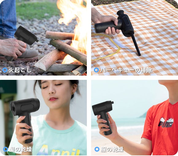 さらにバーベキューの後片付けで、ピクニックシートの上の落ち葉や砂を吹き飛ばして掃除することも可能です。
