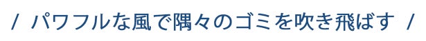 コンパクトなY01ですが、空気圧6,000 Paの風でペットの毛や砂、ゴミなどを一気に吹き飛ばします。また、1分間に5万回転するブラシモーターが力強く安定した風を吹き出します。