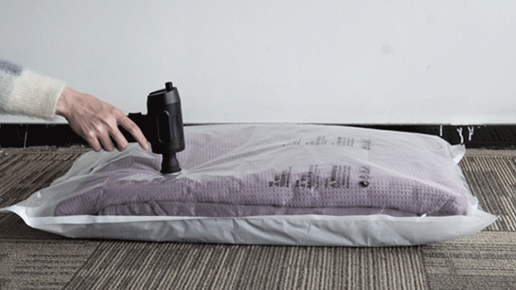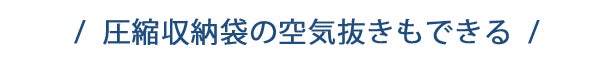 Y01は空気の吹き出しだけではなく、真空ポンプとして空気抜きもできます。布団や衣類の圧縮収納袋、食品の真空袋などの空気を楽々抜くことが可能です。
