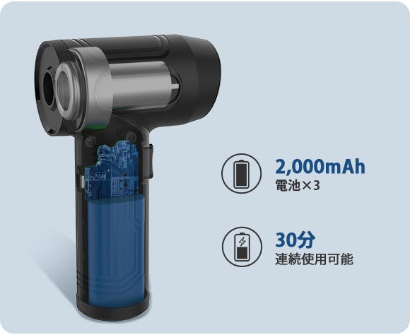 小型で軽量なY01ですが、3本の2,000mAhリチウム電池を内蔵しており、たっぷり30分使用できます。重さはわずか372gで収納しやすく、片手で楽々取り扱えますので、女性や力の弱い方もご使用いただけます。