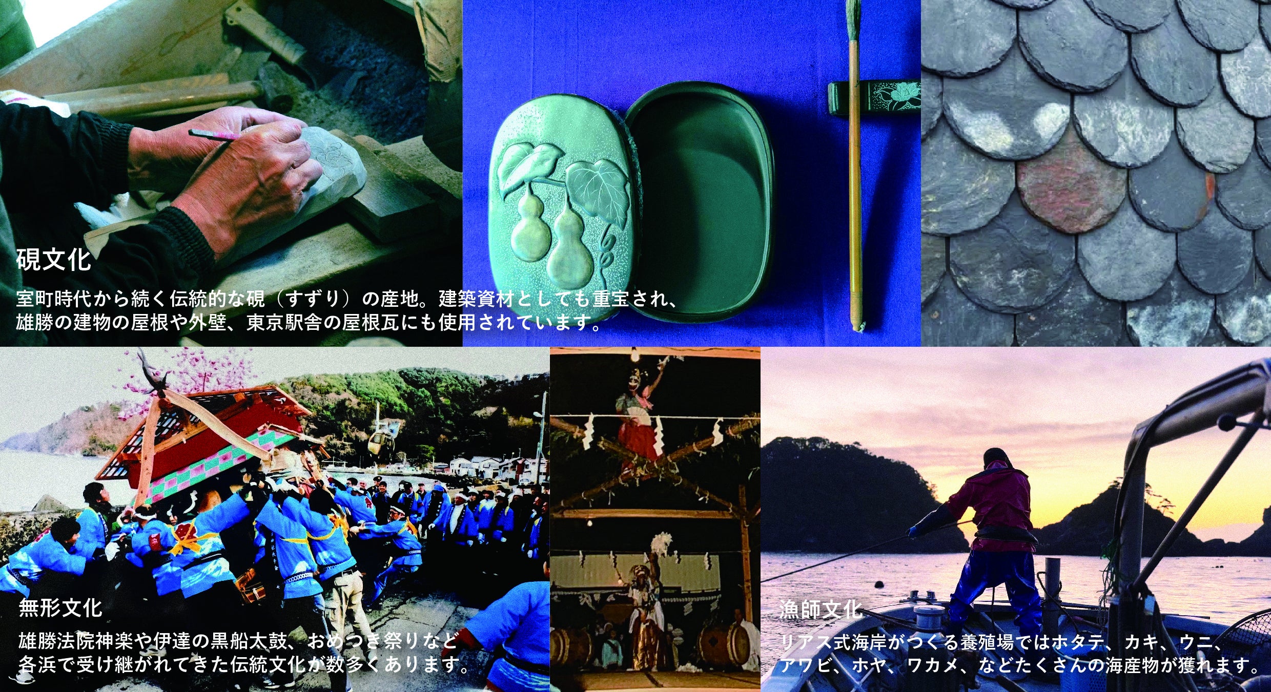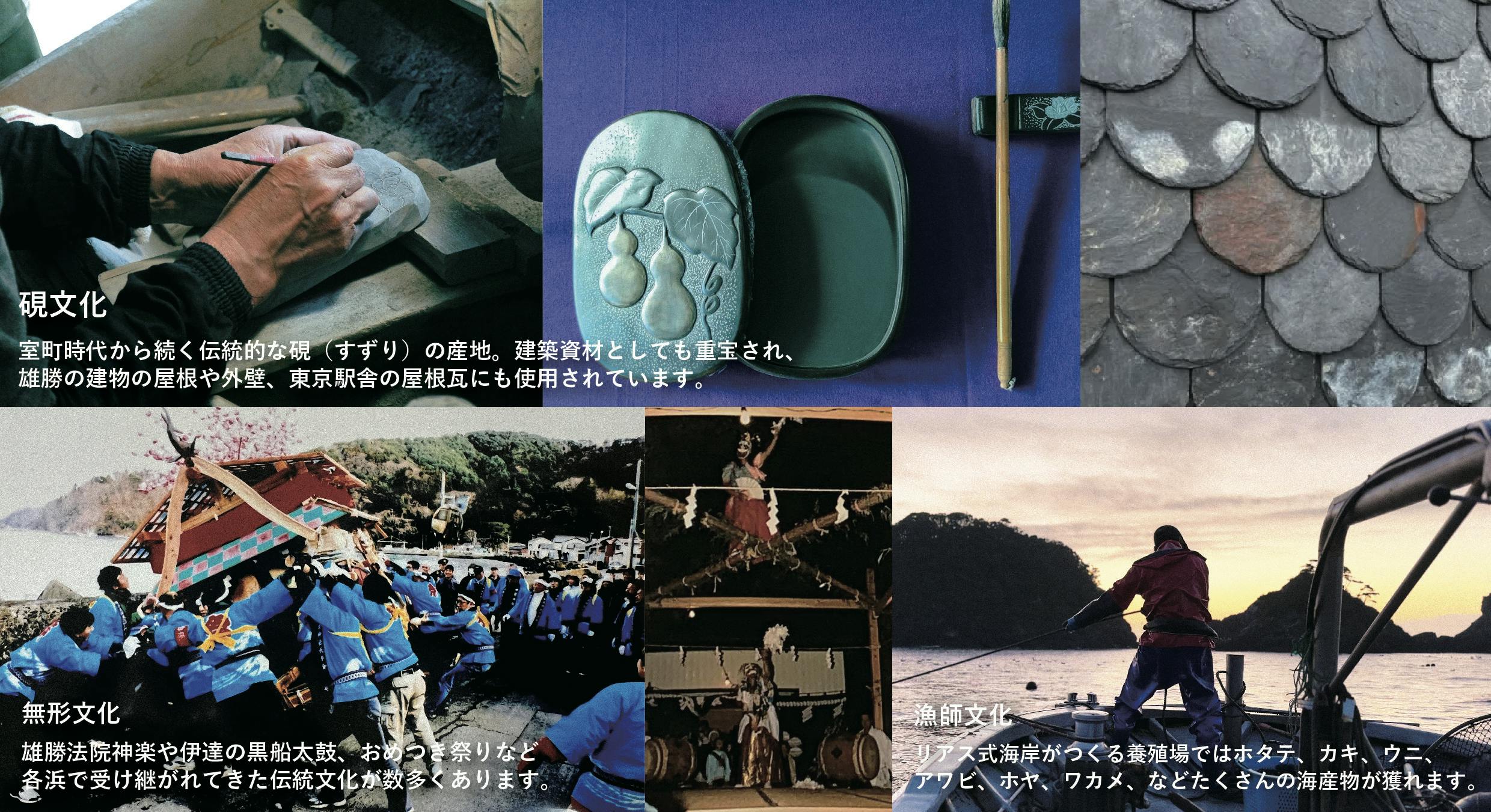 リアス式海岸によって生まれた豊かな海に面する15の浜で育まれてきた漁師文化。