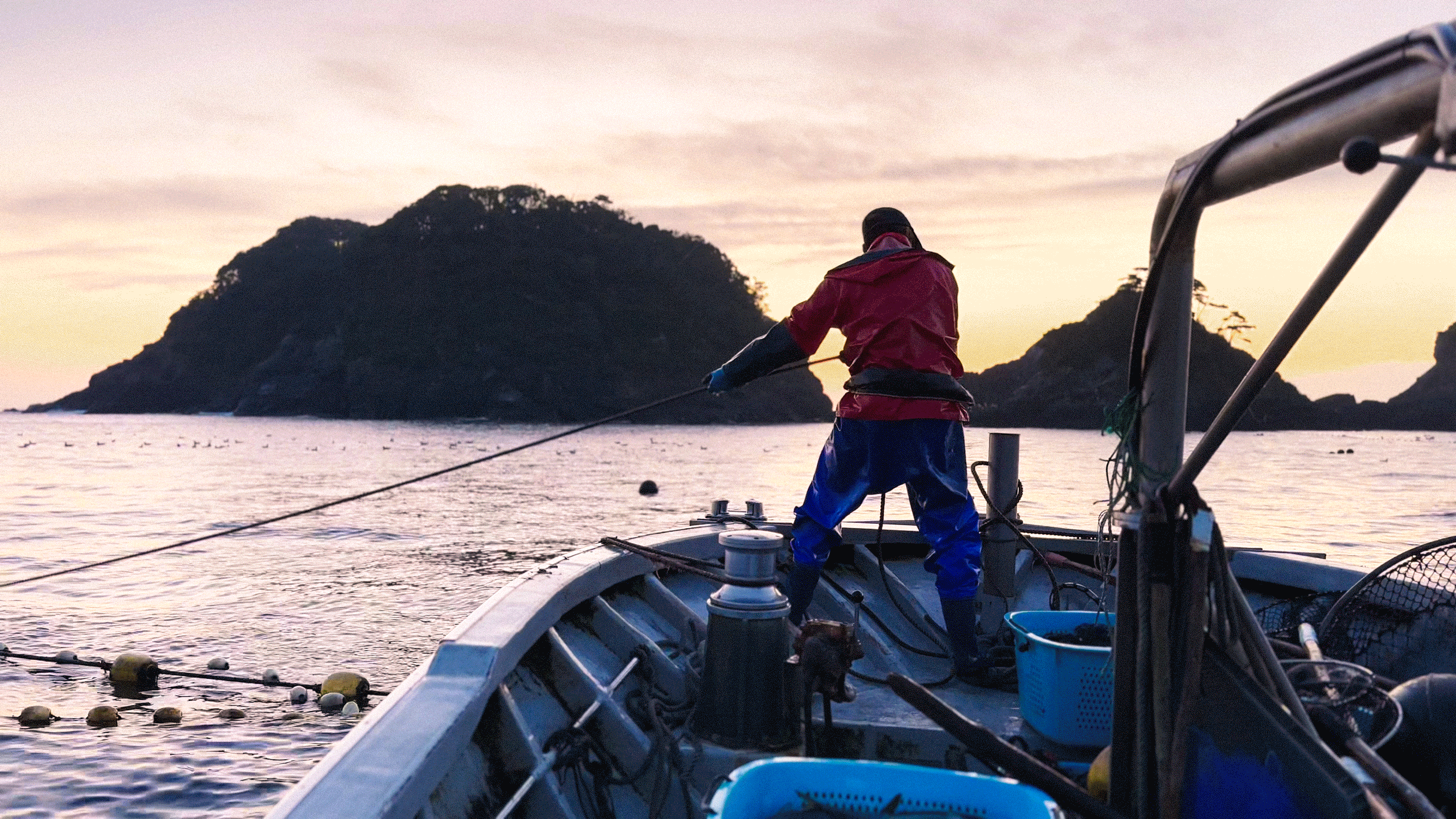 漁をする漁師の姿、使いこまれた漁具、太古から続く日本の風景。
