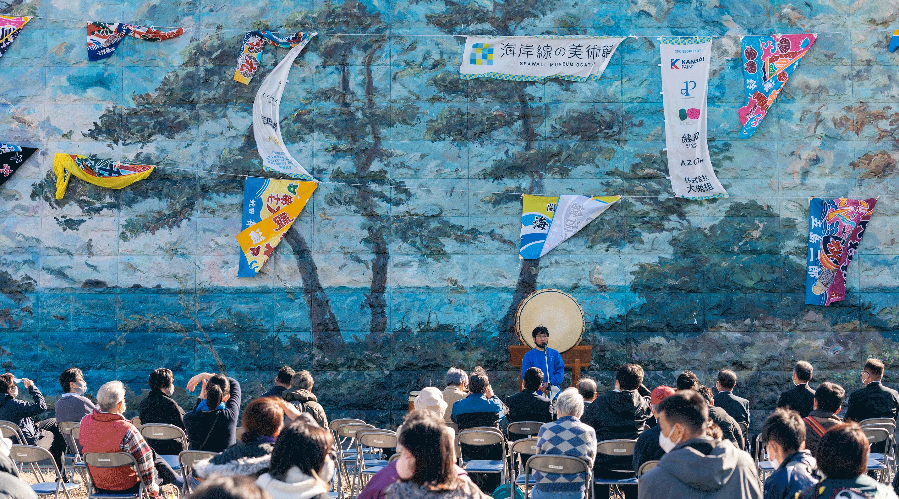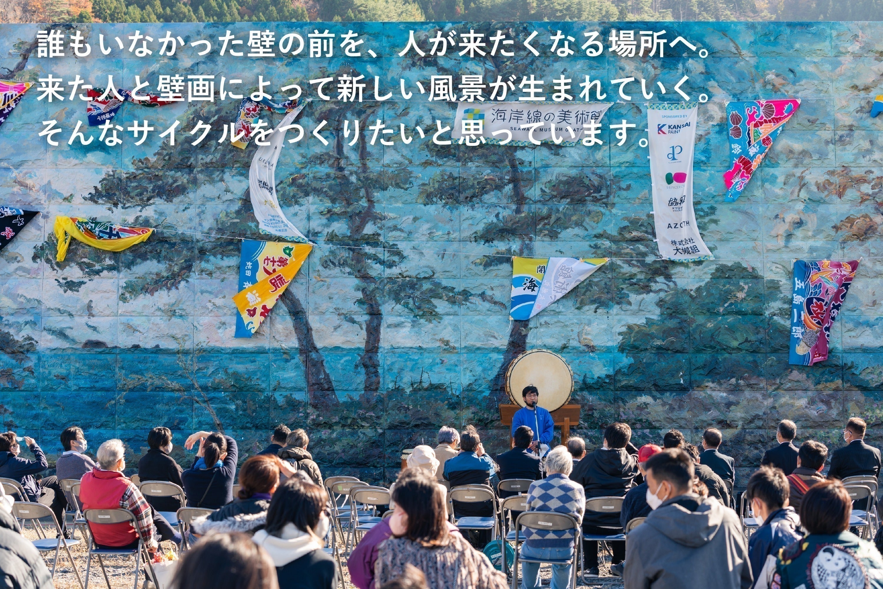 壁画を描いていくことで、防潮堤前の空間が住民や外の人が集う場所になり、壁画と一体となった新しい風景が生まれていく。そのような希望のある復興の新しい形をつくることになると信じていますし、その想いで「海岸線の美術館」は壁画制作やワークショップ、イベントを行っています。