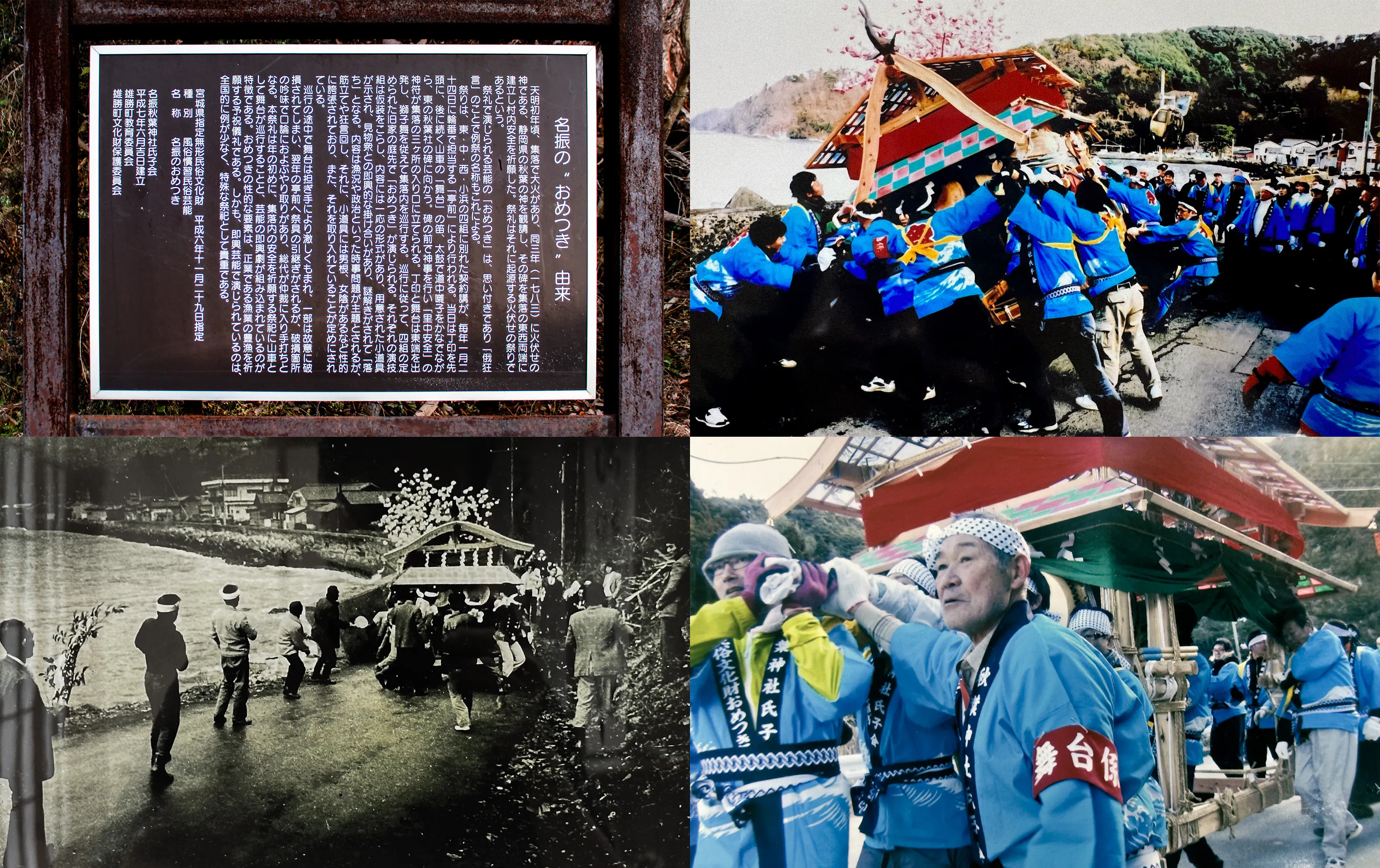 雄勝町の北端、名振地区で200年以上前から伝わる火伏のお祭り「おめつき」。山車を荒々しく担いで壊すダイナミックなお祭りで、無形民族文化財にも数えられています。しかし、近年は担い手の減少とともに開催されておらず、存亡が危ぶまれています。このお祭りを、海岸線の美術館をきっかけに雄勝町を訪れた人が知り、継承していくきっかけになればと考えています。
