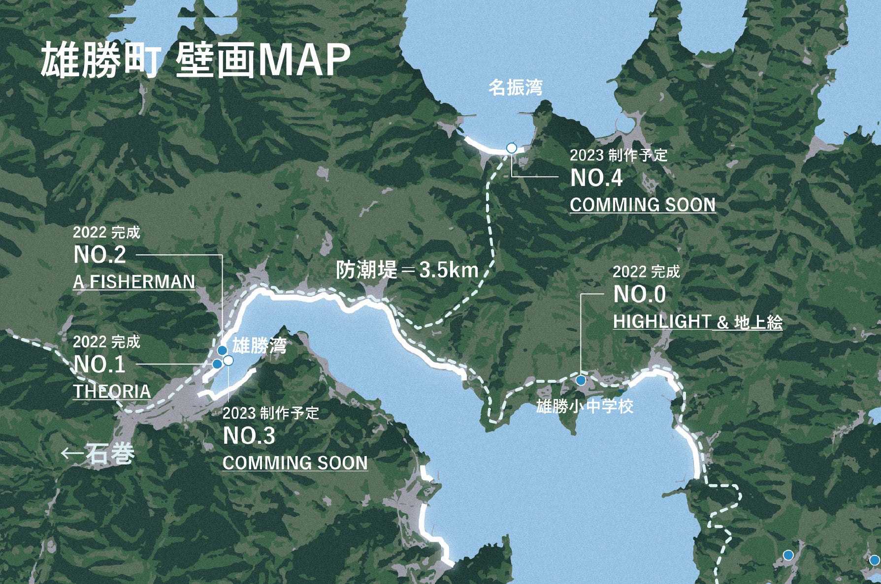 壁画から壁画まで海岸線沿いを巡って鑑賞することで、雄勝の魅力を隅々まで味わえるようにしていきます。