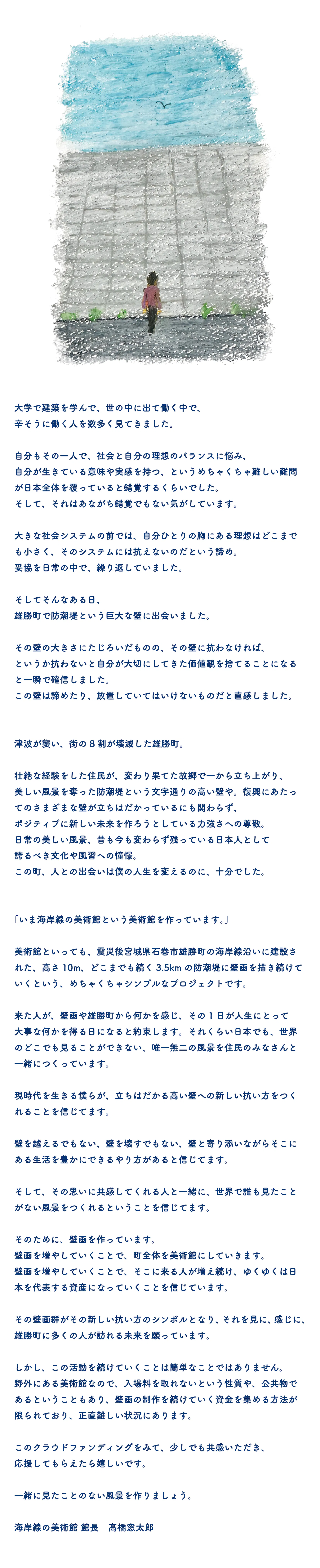 海岸線の美術館のクラウドファンディングを見ていただきありがとうございます。