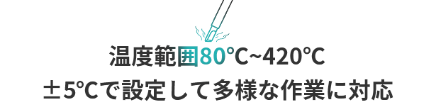 また、温度は80℃~420℃の間で±5℃で調節できます。幅広い温度設定で、多様な作業に対応可能です。