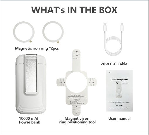 MagSafe対応のiPhone、マグネットリングを張り付けたワイヤレス充電対応のアンドロイドなど5台のデバイスを同時に充電できます。大容量10,000mAh、バッテリー残量がわかるインジケータ搭載