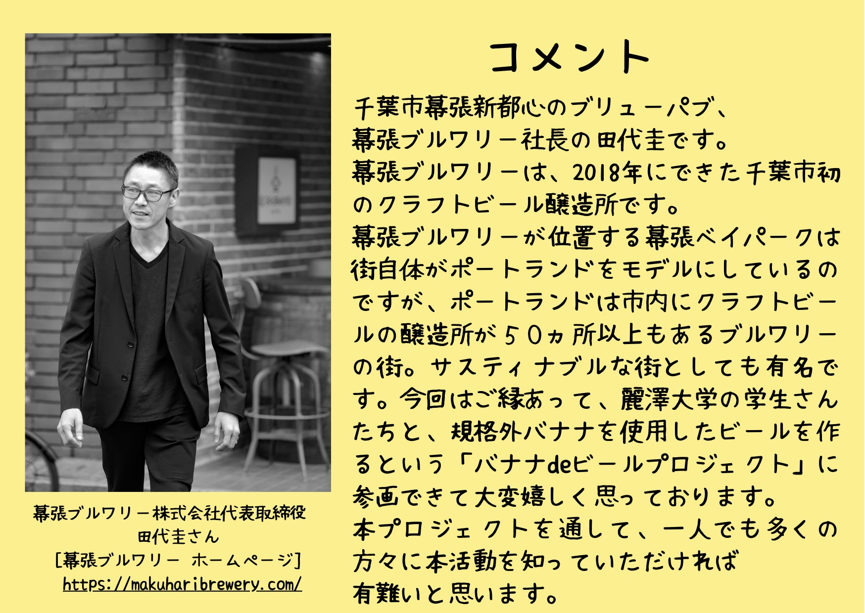 そんな繋がりからYゼミの先生と私たちのゼミの先生が交流し、私たちバナナプロジェクトも柏ブルワリーさんを訪問しました。