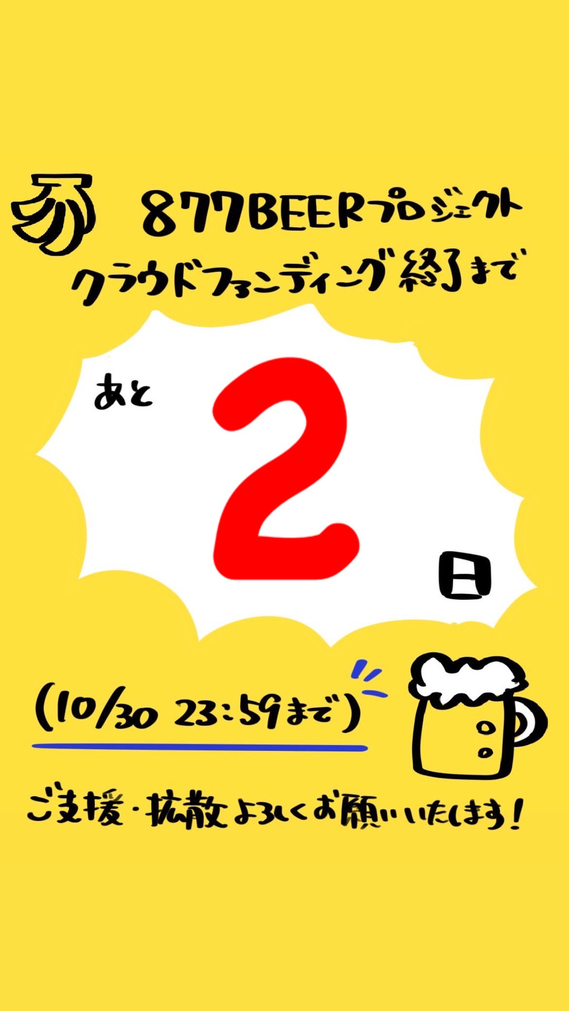 皆さまおはようございます!バナナビールプロジェクトの野崎です。平素より応援いただき誠にありがとうございます。本日で私たちのクラウドファンディングは残り2日となり、10月30日の23時59分までとなっております。残り2日となりますが、私たちのプロジェクトは、皆さまがフードロス問題と向き合うきっかけになれたでしょうか。私自身、このプロジェクトを始めてからフードロスの問題を活動前以上に考えるようになりました。生活していく中でやはり食品廃棄の場面を多々見かけてしまうのが現状です。まずは、一人ひとりが必要な分だけを買うことを意識してみてほしいなと思います。また、今回の活動を通して他のSDGs問題についても、さらに気になるようになりました。皆さまが平和で、公平に、幸せに生活できるよう願っております。残りわずかとなりますが、引き続きよろしくお願い申し上げます。