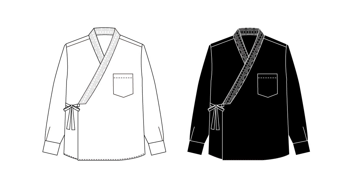胸元は刀のようにソリッドでシャープな印象にするため、はだけにくいようデザインとパターンを起こしています。着るだけで身が引き締まるような着心地はまさしく刀のような仕上がりになりました。