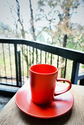 明るいローズレッドのマグカップで気分転換もいいですね。