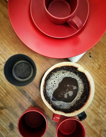 淹れたてコーヒー コーヒー好きの私。 今日はお仕事の合間に、いい香りのする淹れたてコーヒーでリフレッシュ。 REDのマグは、色も楽しみたい紅茶よりもコーヒーの方が合うのかしら、 と思いながら器とコーヒーを楽しんでいます。 RYOTA AOKI POTTERY 鈴木