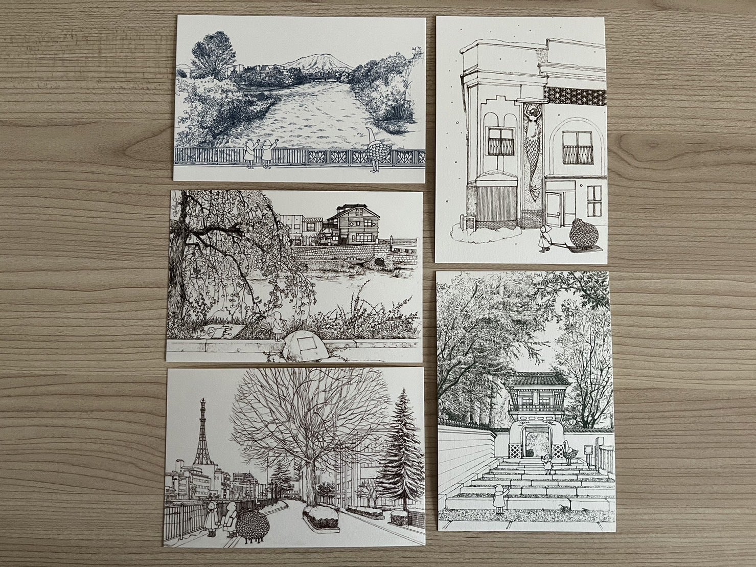 岩手県盛岡市在住のイラストレーターでデザイナーのさいとうゆきこさんによる盛岡の風景を描いたポストカードセットをお送りします。