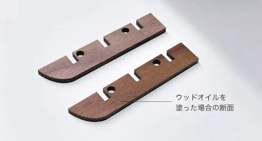 - 組み合わせる前に、ウォールナットウッドの素材に木材の仕上げに多く使われる「ウッドオイル」や「ウッドワックス」を布を利用し繊細に塗ったらより濃い色になります。もし木材用のオイルやワックスがない場合は「ヴァセリン」などを利用すれば似たような効果を得られます。