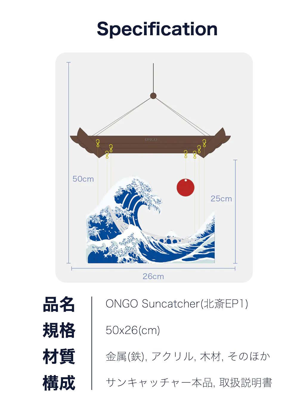 2023/10/13 17:58皆さん始めましてー!今回のプロジェクト「北斎サンキャッチャー」を担当している、株式会社オンキと申します!今回は、弊社のプロジェクトをご覧にしていただき心より深い感謝を申しあげます。今回のプロジェクトである「北斎サンキャッチャー」は、伝統的なデザイン要素と過去の名作を参考にして新たな商品を開発してきた、スタートアップチーム「ONGO」との協力で作りあげた商品です!葛飾北斎の神奈川沖浪裏の絵を見て、作品に込められた特徴を活かして、現代的なデザイン商品を開発してみようという、ONGOとONKIの両社の異議統合によって誕生したプロジェクト企画です。今後、こちらの活動報告掲示板にて皆様とコミュニケーションし続けたいと思っております。今回のプロジェクトには100名様限定のイベントもございまして、両社の利益をほぼない状態にしたリターンもございます。今後ご支援していただきました皆様にもっとプレゼントできるよう、両社とも最善を尽くしますー!ご支援、ご覧にいただき本当にありがとうございます。何卒よろしくお願いいたします。株式会社オンキ もっと見る