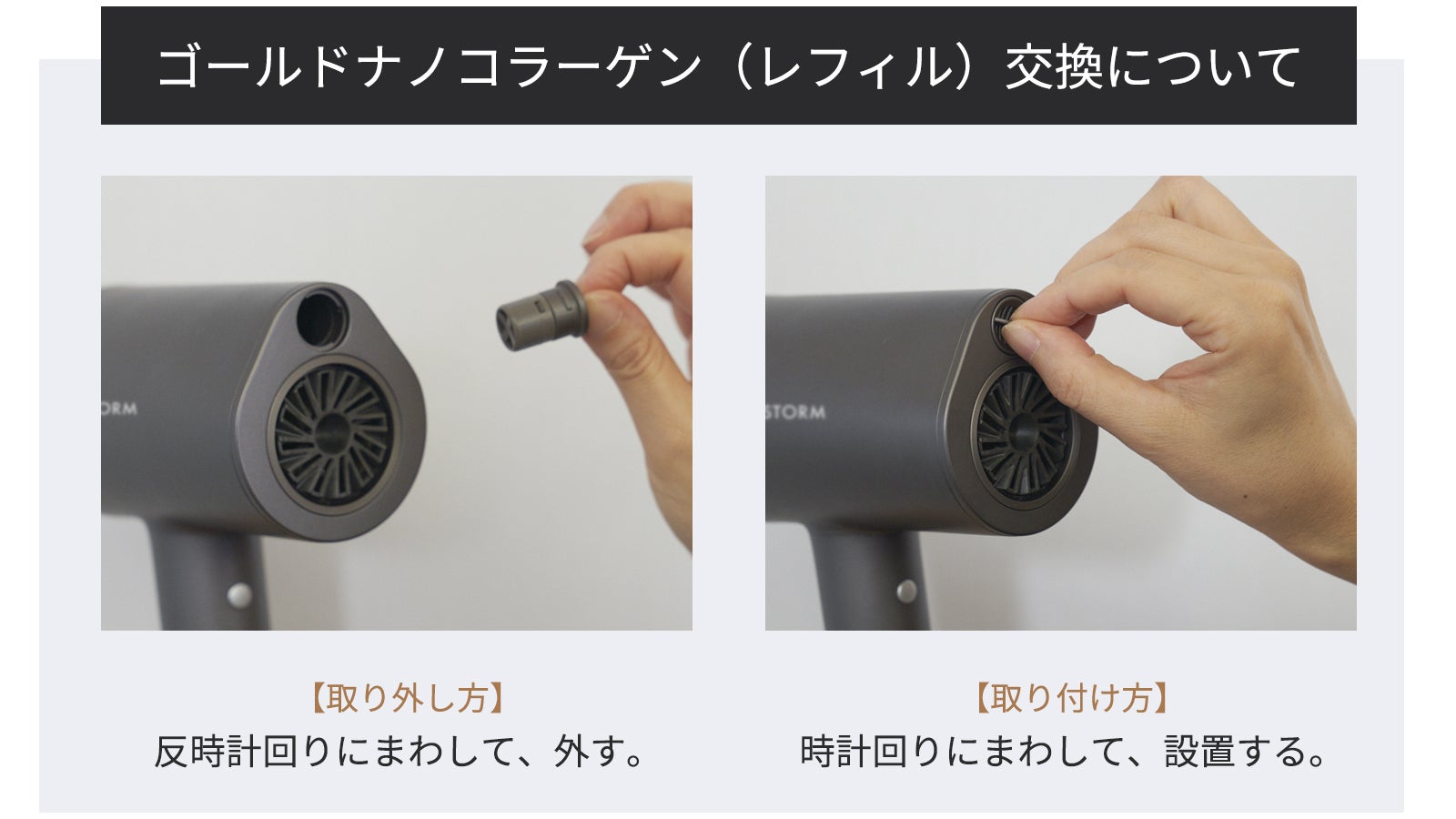 ゴールドナノコラーゲン(レフィル)*は、1年に1回を目安に交換してください。