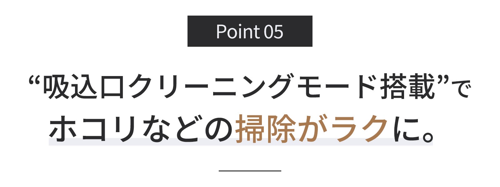 本製品は、吸込口に溜まりやすいホコリなどの掃除に便利なクリーニングモードを搭載しています。電源を切った状態で、温度ボタンを3秒長押しすると、モーターが逆回転します。約10秒間、吸込口をクリーニングした後は、自動で電源が切れます。
