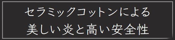 半永久的に使用可能なセラミックコットンは均一で美しい炎を放つだけでなく、万が一の際も液体燃料がこぼれにくい仕様となっています。