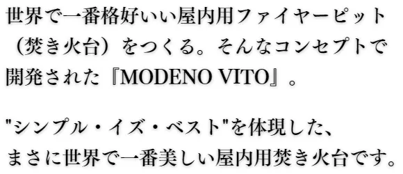 MODENO VITOがつくる『本物の炎』は、きっとあなたの毎日に新しい安らぎを与えてくれます。
