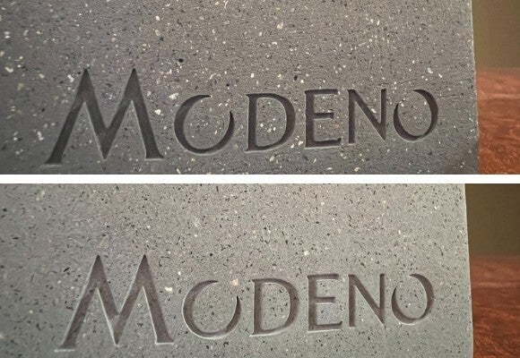 VITO唯一のアクセントとなる「MODENO」の刻印にはこだわりのデボス加工を施しました。光があたると美しくシルエットが浮かび上がります。
