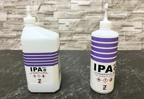STEP2: IPA(イソプロピルアルコール)に少量の水を加え、IPA:水=8:2程度に薄めて燃料カップに入れます。