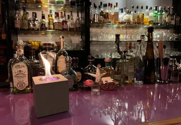 A:MODENO VITOの炎は本物ですので使い方を誤ると危険です。小さなお子様やペットには十分ご注意ください。また泥酔中の使用は控えてください。ご使用の際は近くに燃えやすいものを置かないようにしてください。