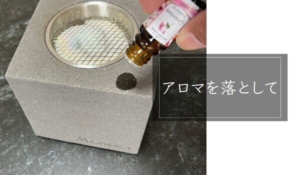 A:はい、アロマオイルを本体の縁付近に落として使用することで、炎の熱によりほのかに香りを楽しんでいただけます(感じ方には個人差がありますのでご了承ください)。念のため乾燥した際に本体に痕が残らないことをご確認の上ご使用ください。