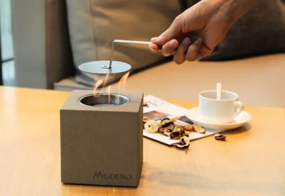 屋内で使うことをコンセプトに作られたMODENO VITOの特長は煙も匂いもないこと。灰や燃えカスも出ないので、準備や片づけ、お手入れも必要ありません。