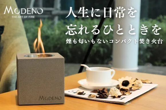 また、新たに設立した『MODENO』ブランドは、これまで商業施設や庭園向けに開発してきた大型のファイヤーピットとは異なる、主に屋内や卓上で使用できるコンパクトな焚き火台を提供するブランドとして立ち上げました。
