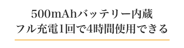500mAhバッテリーを内蔵しており、フル充電1回で4時間ご使用いただけます。短期間の旅行や出張なら、ケーブルを持って行く必要はありません。Type-Cポート搭載ですので、バッテリー残量がわずかになったら急速充電できます。