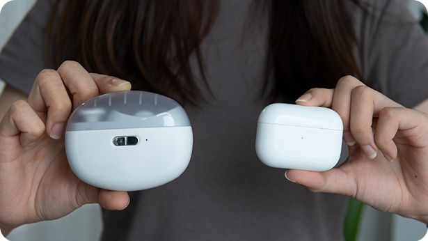 大きさはわずか85×68×33mm、重さ120gのコンパクトさ。Bluetoothイヤホンケースと同じくらいのサイズですので、ポケットに入れておいても邪魔になりません。