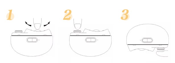 A3:電動爪切りには裏表があるため、より綺麗に爪切りができるよう、カットする際は正面(ランプがついている面)を上にしてください。