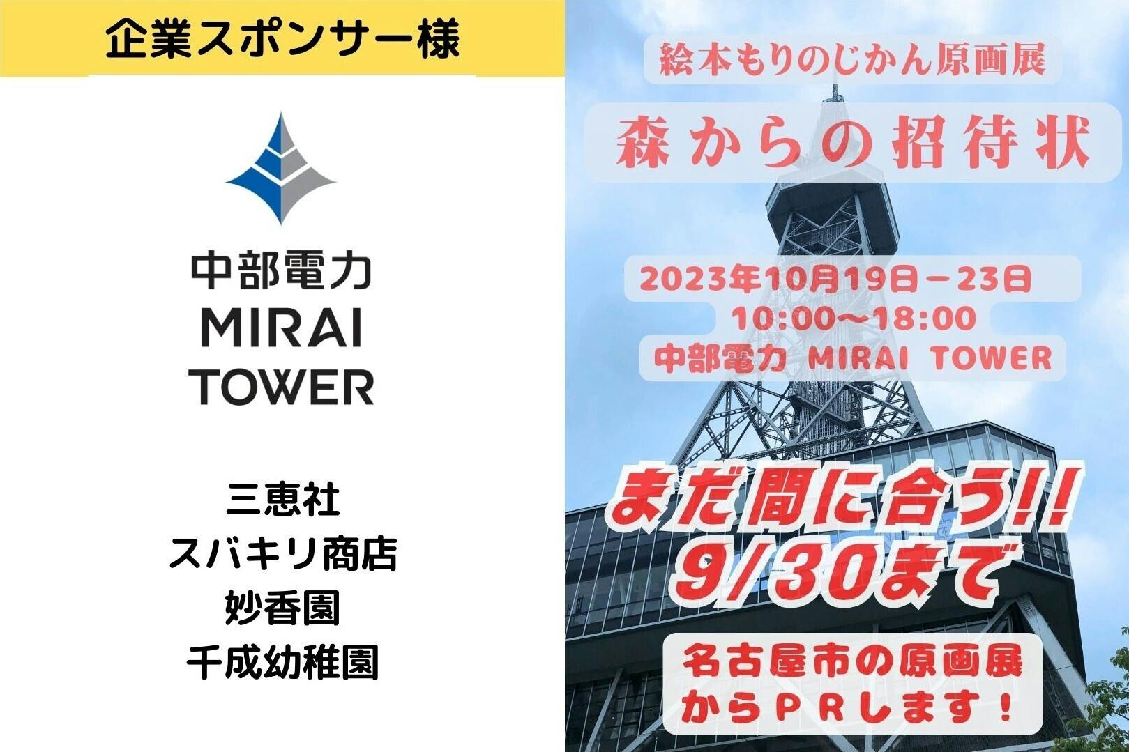 昨年の「絵本をお届けできる権」による寄贈先となった中部電力 MIRAI TOWER様がクラウドファンディングを開始前にご縁あって原画展の展示スペースをご提供いただいた上に、スポンサーにもなってくださいました。