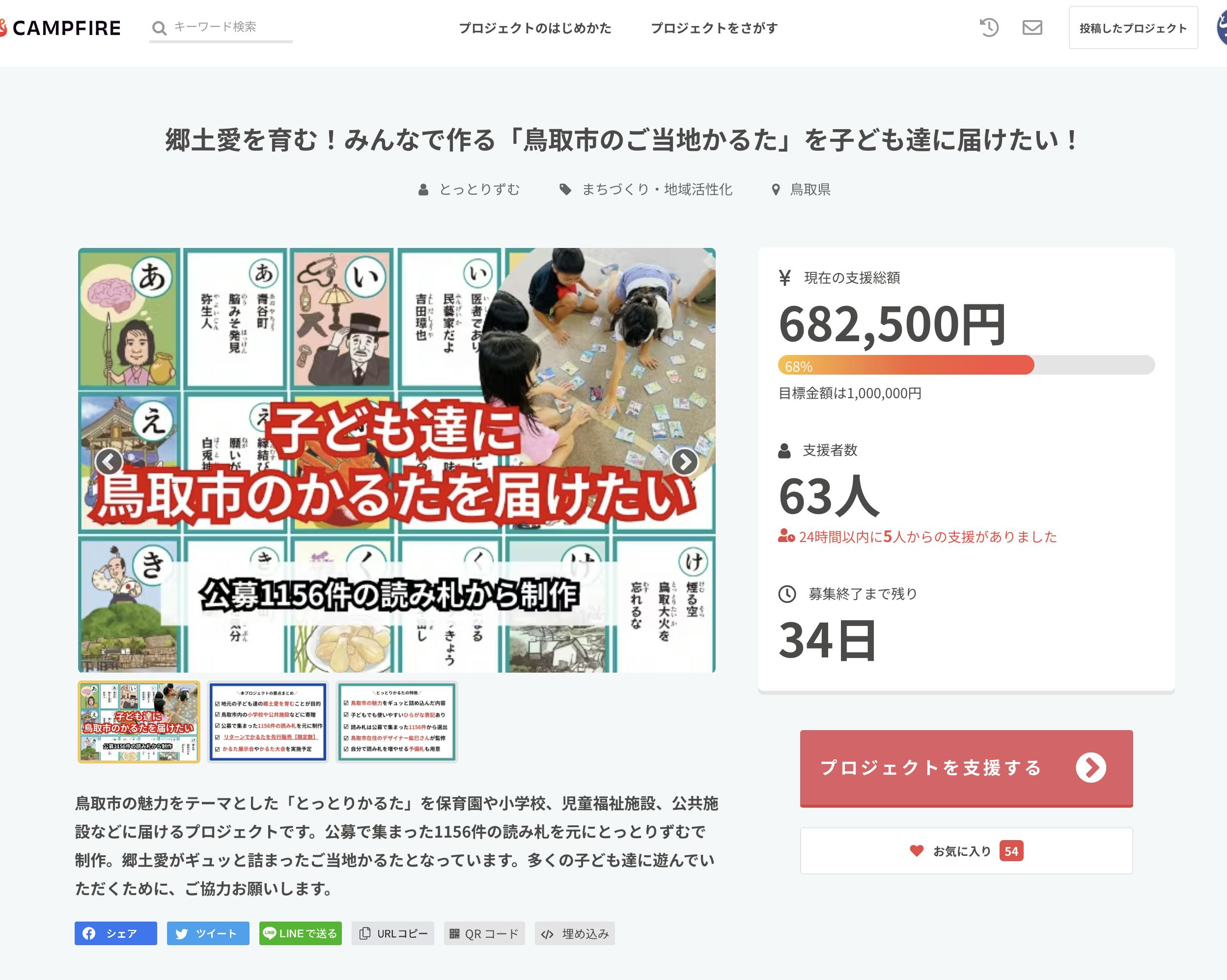 9月4日に「とっとりかるた」のクラウドファンディングがスタートして1週間が経ちました。