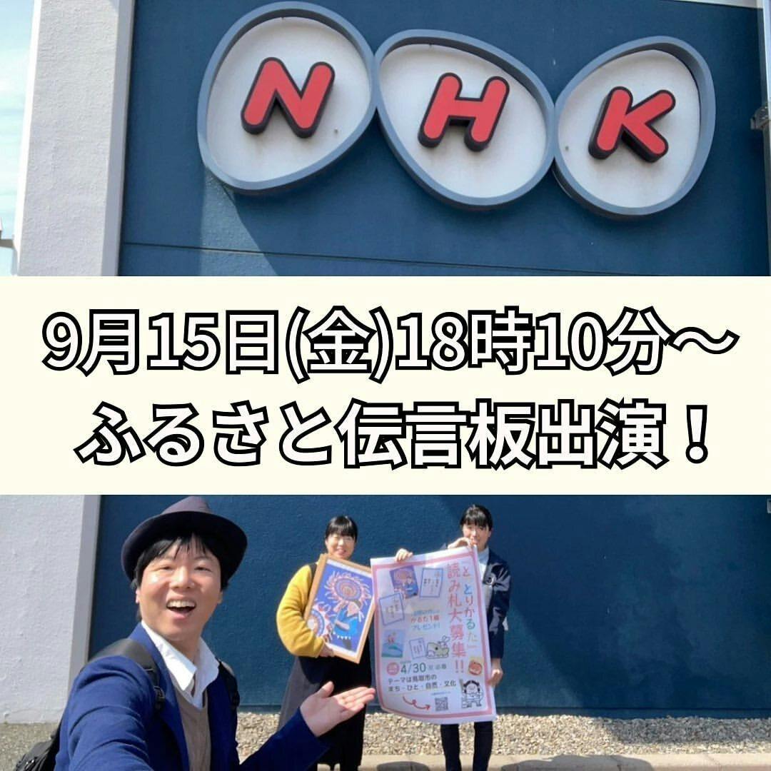 9月15日(金)18時10分~NHK鳥取総合で放送の「いろ☆ドリ ふるさと伝言板」に、とっとりかるたプロジェクトメンバーで出演します!