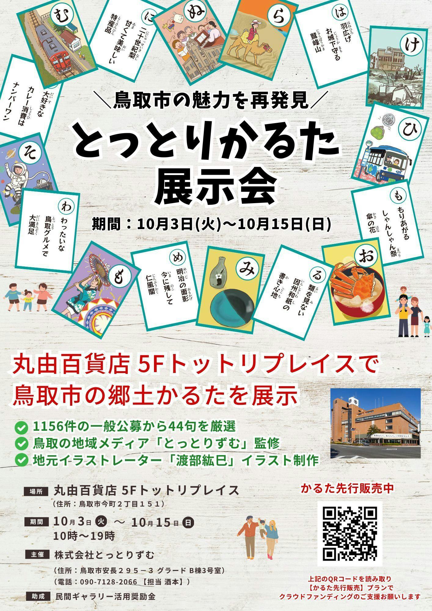 10月3日(火)〜10月15日(日)の期間、丸由百貨店 5Fトットリプレイスにて、「とっとりかるた展示会」を開催します。