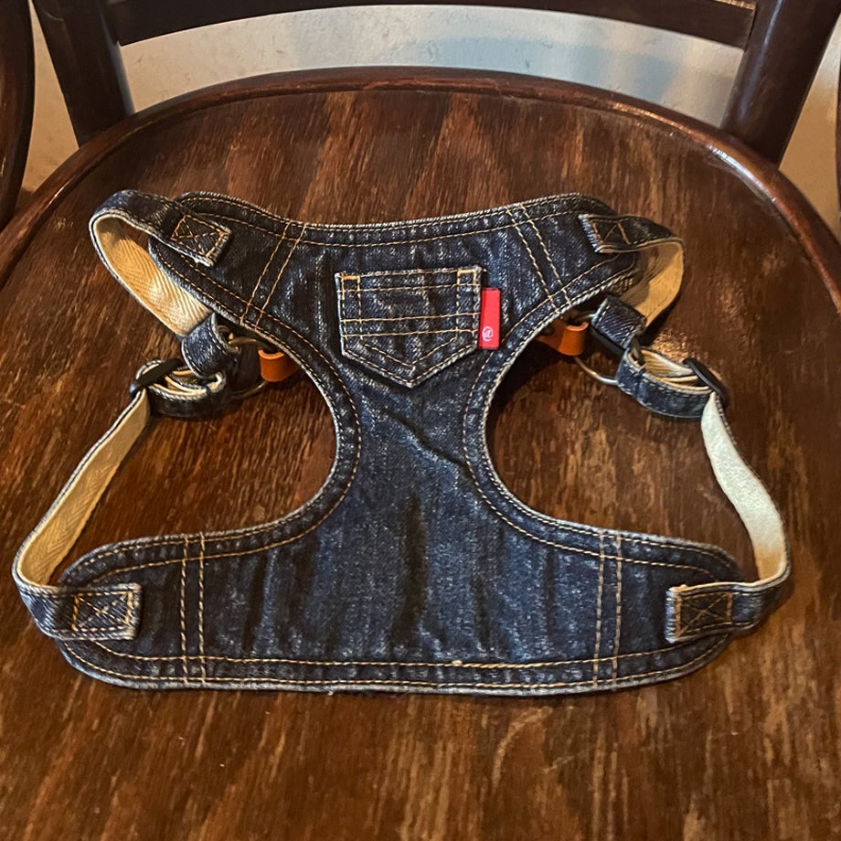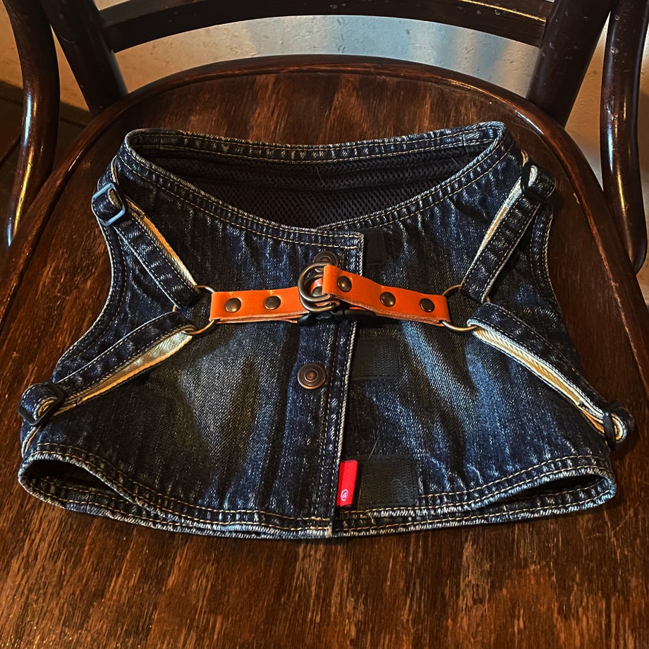 国産デニムとして名高い「岡山デニム」のメーカーとタイアップして本格的なのに シンプルで使いやすいハーネスを作りました。 サイズM~L(オープン後はXLサイズも入荷予定です。) 首回り35センチ前後まで。胴回りも53センチ前後まで対応可能です。