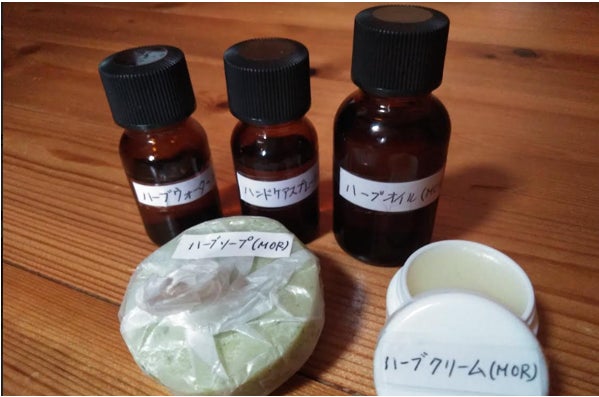 ハーブウォーター(化粧水)、ハーブオイル、ハーブクリーム、ハーブ石鹸、ハンドスプレーを姫路市香寺ハーブガーデンにお願いしました。