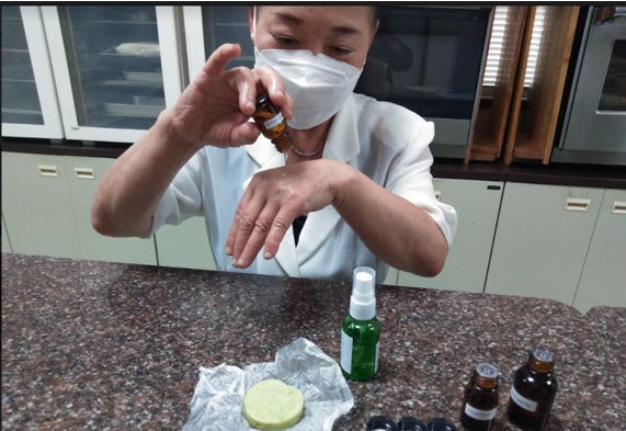 兵庫県姫路市の香寺ハーブガーデンの福岡社長と何度も協議し、モリンガパウダーからモリンガのアロマ、モリンガウォーターを抽出していただき、サンプルを試作して頂きました。