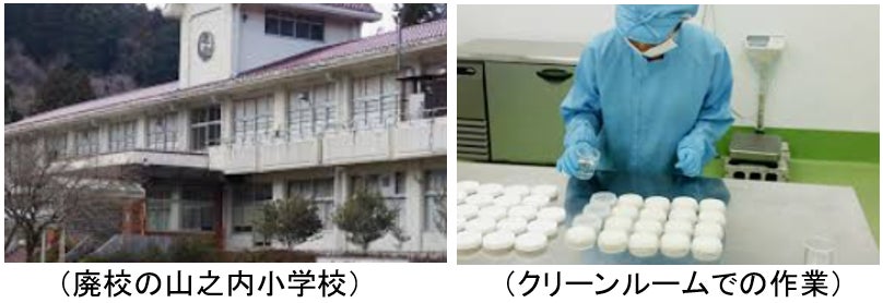 香寺ハーブガーデンの工場は、姫路市の山之内地区にある廃校になった小学校の教室を無菌のクリーンルームに改装し防腐剤等の化学薬品を一切使わず商品化します。この限界集落でもある山之内地区に工場を構えたのは福岡社長の村を昔のように元気にしたいという思いからです。