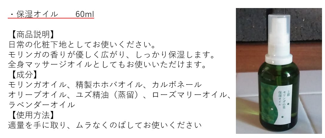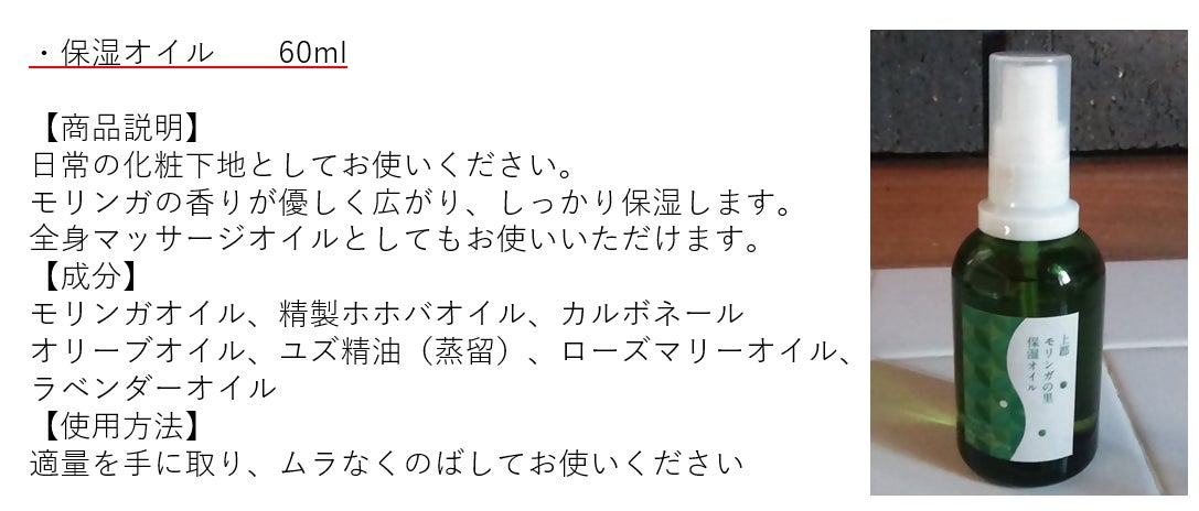モリンガ化粧水、モリンガオイル、モリンガハンドスプレー、モリンガハンドクリーム、モリンガ石鹸を作ります。