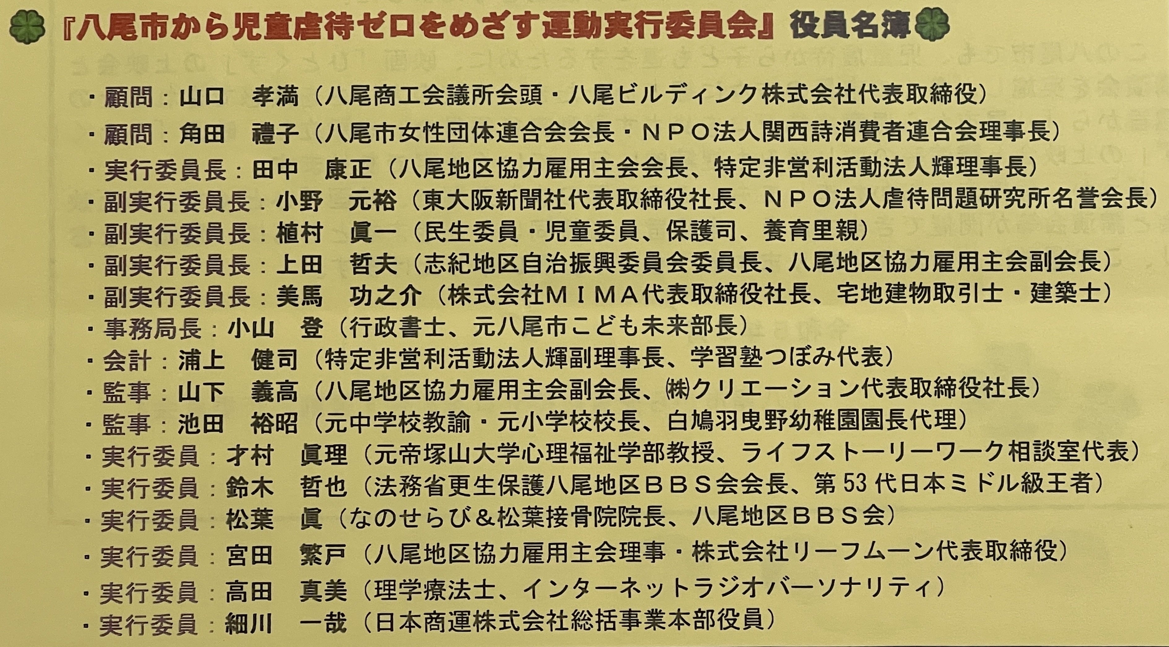 ・八尾から児童虐待をゼロにする実行委員会 副実行委員長