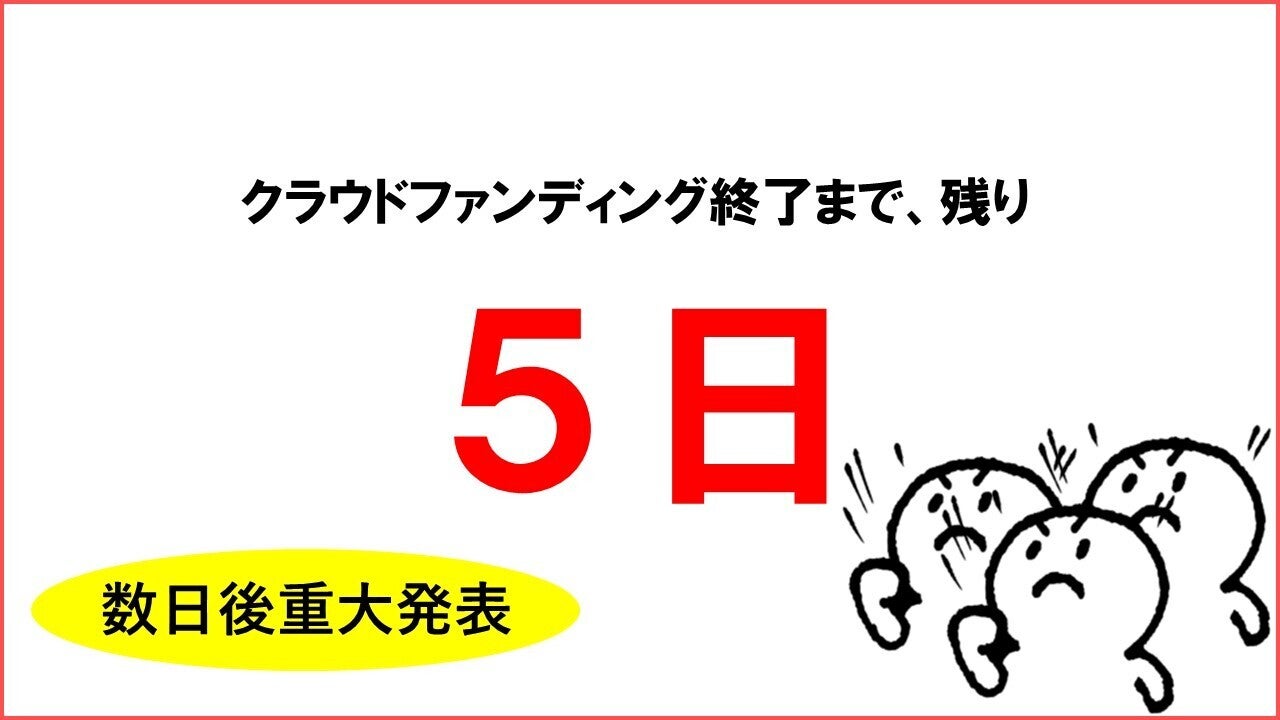 本日2月6日でクラウドファンディング終了まで残り5日になりました。