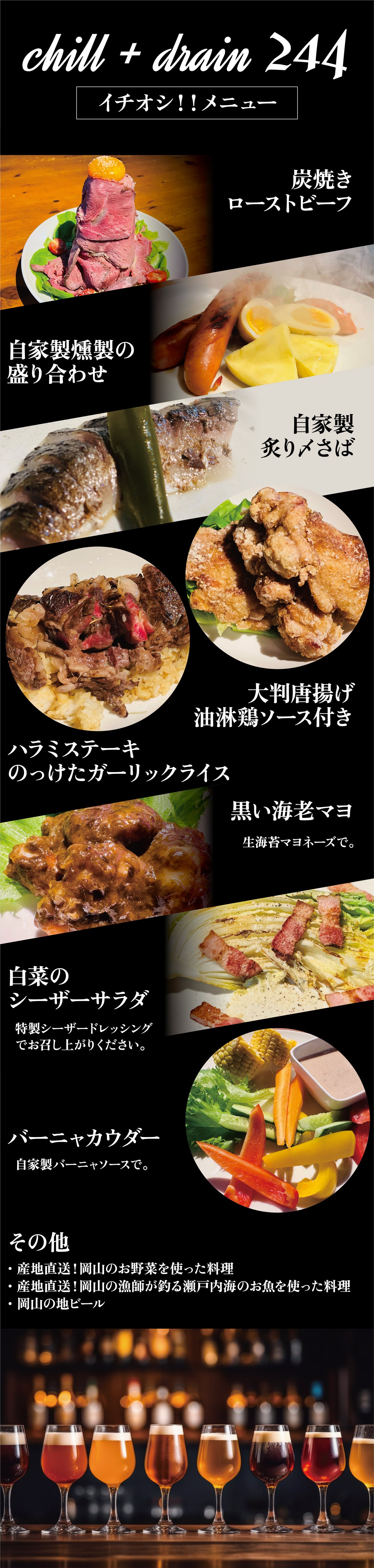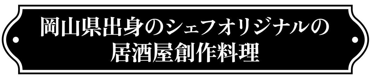 そしてリーズナブルな定番居酒屋料理を始め岡山県出身のシェフオリジナル創作メニューをご提供!