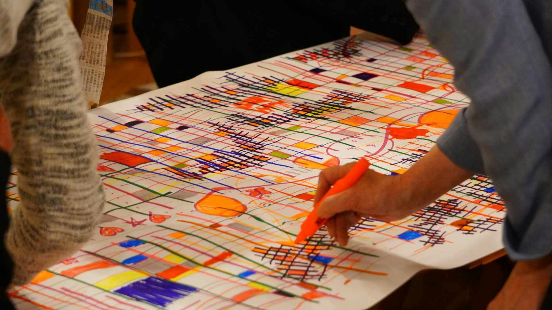 みんなで描いたタテタテヨコヨコを鑑賞。