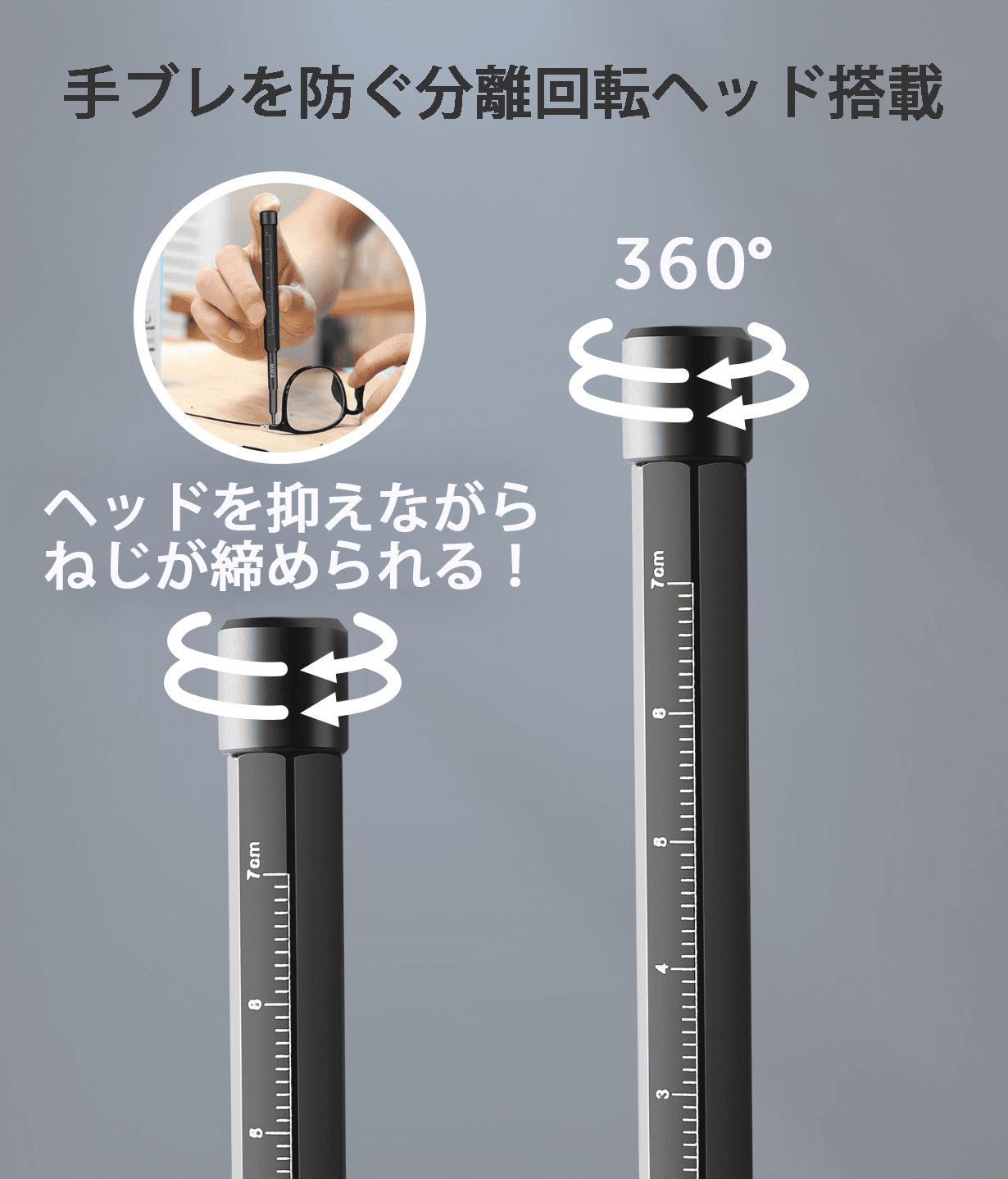 本体とは別で360°回転する分離型ヘッドで安定感抜群!