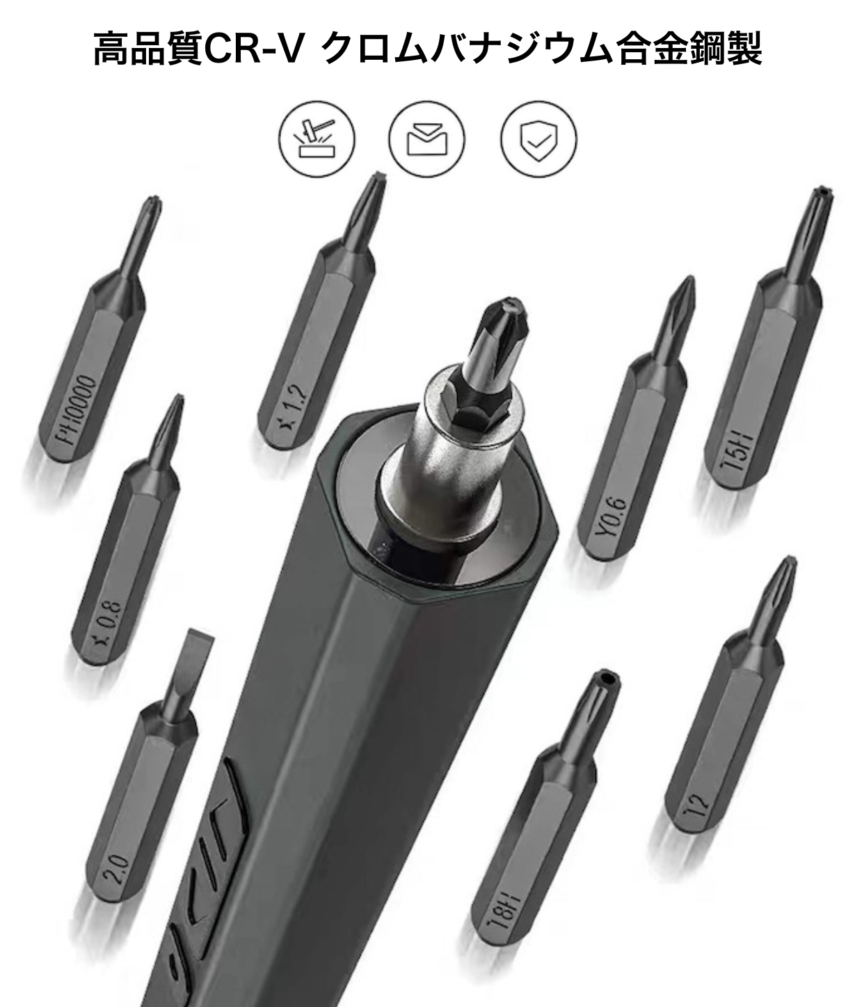 抗静電性があり耐久性に優れたCR-Vビットと安定性抜群な分離回転ヘッドで繊細な作業をもっと簡単に、もっとスムーズに。